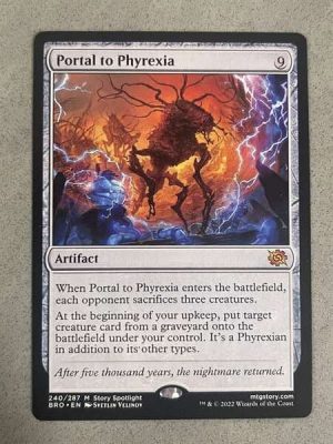 Mana Cost: {9} Total Cost: 9 Type: Artifact Description: When this artifact enters, each opponent sacrifices three creatures of their choice.