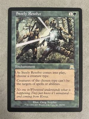 Creatures of the chosen type have shroud. (They can’t be the targets of spells or abilities.)